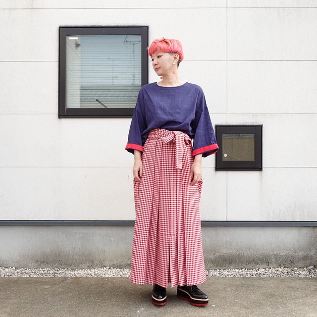 *************************************** 本商品は一度完売となりましたが、 お仕立て工程の調整により使用可能な残布が確認できたため、 ごく少量のみ再販することとなりました。 デッドストックのファブリック生地を使用しているため、 在庫限りとなり、今回が最終のご案内となります。 *************************************** モダンアンテナが提案する「普段着としてのハカマ」。 卒業式のイメージが強い袴ですが 本来は女学生がアクティブに活躍する為のアイテムでした。 ファブリック素材で作ったスカート状の行灯(あんどん)袴。 足さばきが良く、より活動的にスポーティに着こなすことができます。 ロングスカート感覚で、お仕事にもプライベートにも活躍する一枚です。 色は鮮やかな赤白の千鳥格子(ハウンドトゥースチェック)。 落ち着いた色のトップスを持ってきてもPOPに着こなせ、 着物にもお洋服にもコーディネートして頂く事ができます。 紐下丈は91cm。 身長160cmの方が着用すると、足首にかかるくらいの丈です。 足元をブーツやスニーカーで合わせたい方は 足首〜ひざ下丈になるように調整をすると 靴下やタイツをのぞかせて楽しむことができます。 紐を折って着付けをすることにより、丈感を調整することができるので 足元の装いに合わせて着用イメージを変えることができます。 紐を蝶々結びをするだけの簡単な着付け方法なので アレンジの幅が広いことが特徴です。 ※デッドストック生地を使用しておりますので、数に限りがございます。 モデル着用トップス:キモノ袖トップス//ネイビー https://www.modernantenna.com/items/31589715 ■紐下:91cm(ワンサイズとなります) ■使用生地:ポリエステル ■着用時期:通年(盛夏を除く) ■着用モデル身長:161cm =========================== ★ご注意点 ※できるだけ実物の商品と同じ色になるよう努力しておりますが、お客様のご覧になられますパソコン機器及びモニターなどの環境の違いにより、実際の商品の色と若干相違する場合がございます。その点十分ご留意の上、ご購入ください。 ※疑問質問などございましたら、「CONTACT」よりお気軽にご相談下さい。 =========================== ★配送について 複数の商品をご購入頂きました場合、最小のサイズをご選択頂いても梱包出来かねる場合がございます。 その際は1サイズ大きい梱包方法をご選択頂くか、事前にお問い合わせフォームにてご相談下さいませ。 【!】ご指定のサイズで収まらない場合、梱包可能なサイズの差額料金を追加で頂戴致します。 =========================== ★【お着物】返品について ※下記の状態のものは返品不可となります。 1)到着後7日以上経過した商品 2)イメージ違い 3)お客様の依頼によってお仕立て(お誂え等)した商品(当社の加工ミスによる返品はこの条件に含まれておりません) 4)お客様側によるサイズの測り間違い 5)しつけ糸をとる、羽織る、加工、損傷、汚損などの行為をした状態のもの (再販不可になるような状態のもの) ○上記以外の商品については、商品到着後7日以内であれば返品・交換が可能です。 これ以降の返品はご対応できませんのでご了承ください。 ※返品にかかる送料について ■【不良品の場合】返品送料は当店が負担いたします(着払いにて) ■【お客様都合(ご注文違い・イメージ違い・等)での返品・交換の場合】 返品の際にかかる手数料はお客様のご負担となりますのでご了承ください。 ===========================
