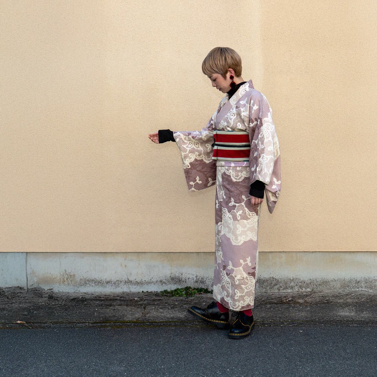 バラの地紋にアンティークのレース柄が何段にも重なったデザイン。