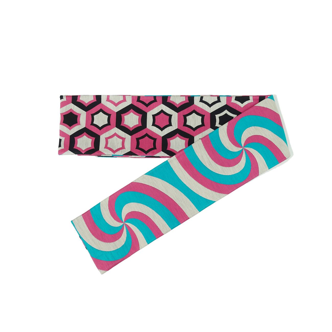 ウズ(ターコイズ&マゼンタ)×六角(マゼンタ)【西陣織半幅帯】(受注商品)
