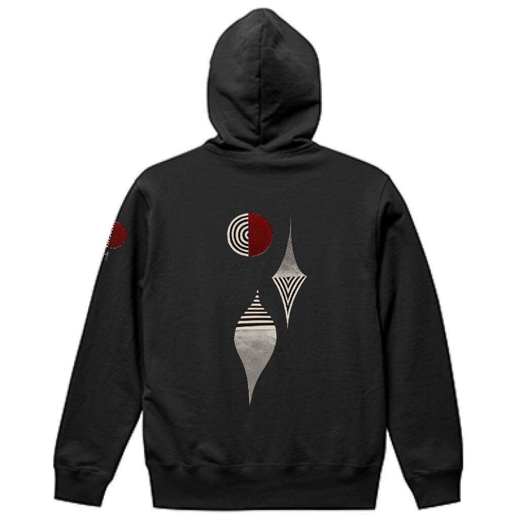 モダンアンテナの人気柄「浮遊」が、フード部分の赤がクールなフルジップパーカーで登場。
