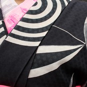 上下左右が決まった着物の一柄から離れ、天地を決めず全ての絵柄か?浮遊しているようなデザイン。
