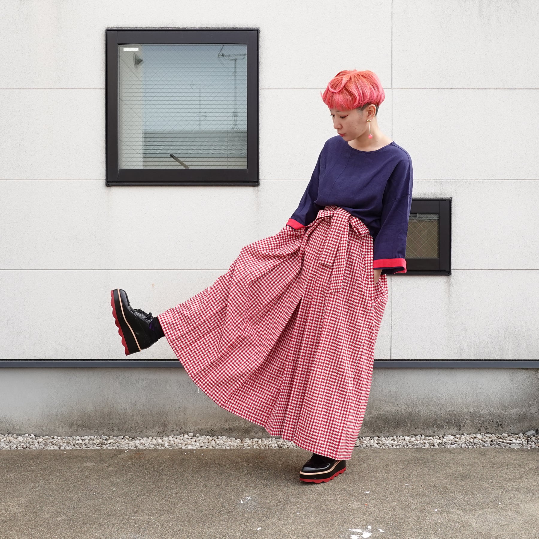 ロングスカート感覚で、お仕事にもプライベートにも活躍する一枚です。