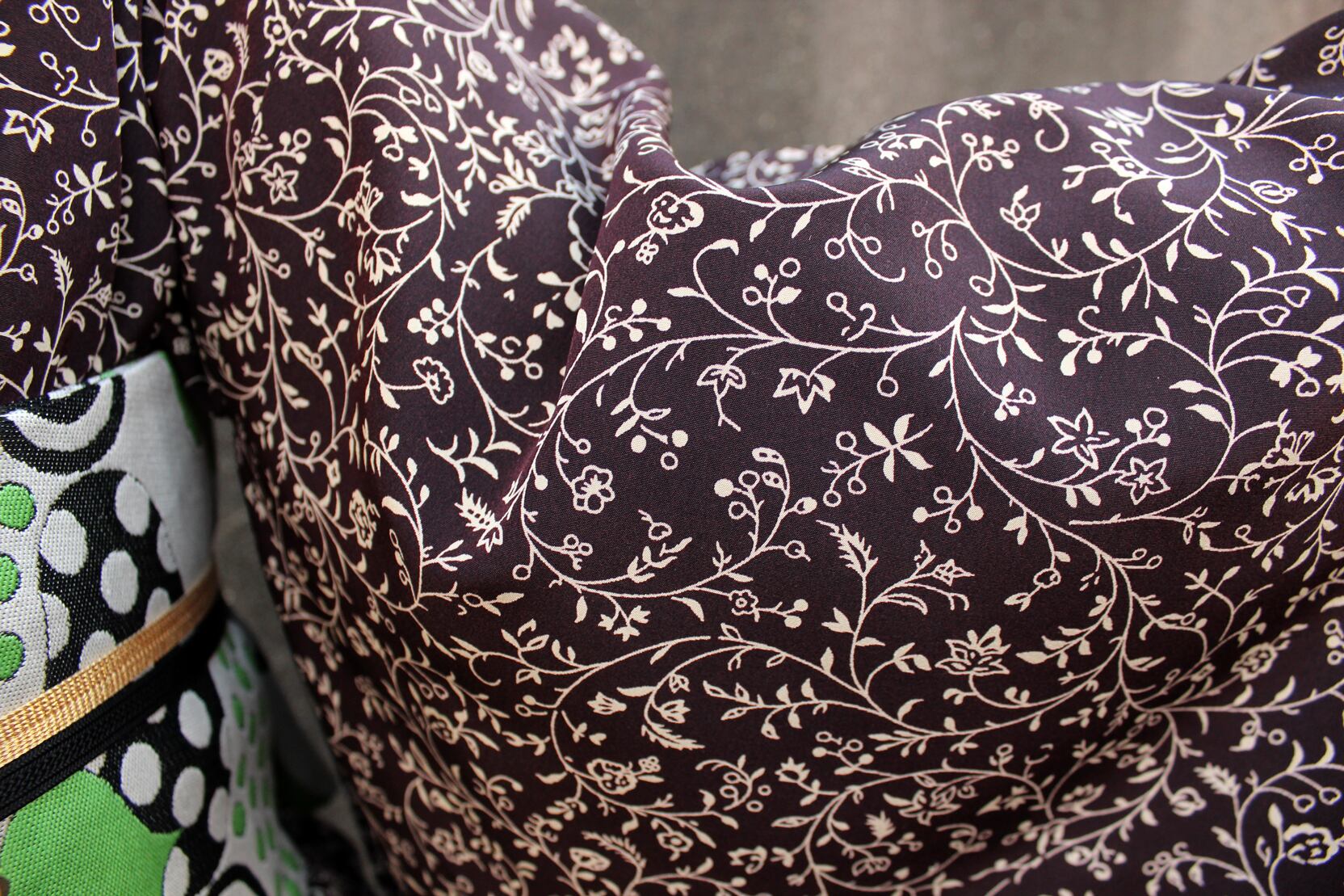 小さなツル小花柄。色は黒と紫の2色。