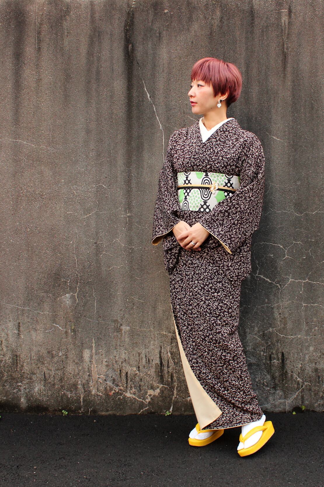 半襟を入れて、草履を履いて、名古屋帯を締めて、