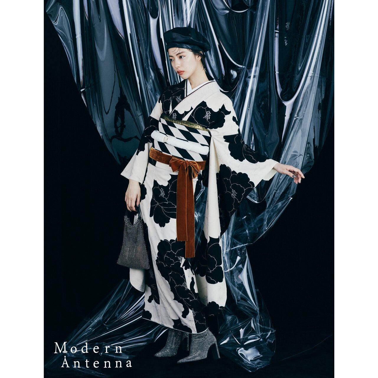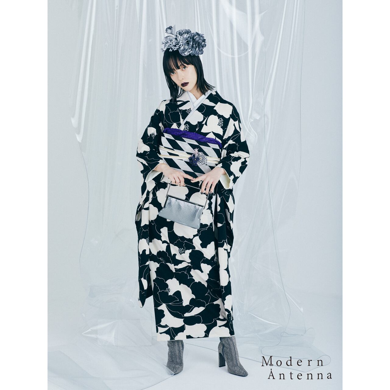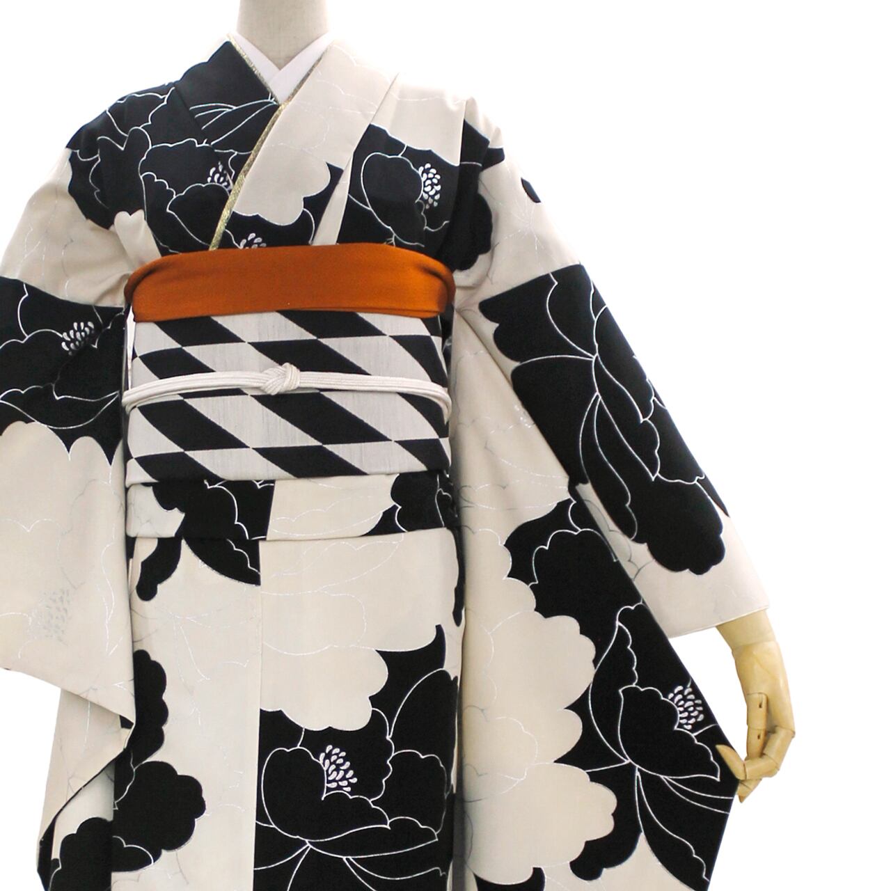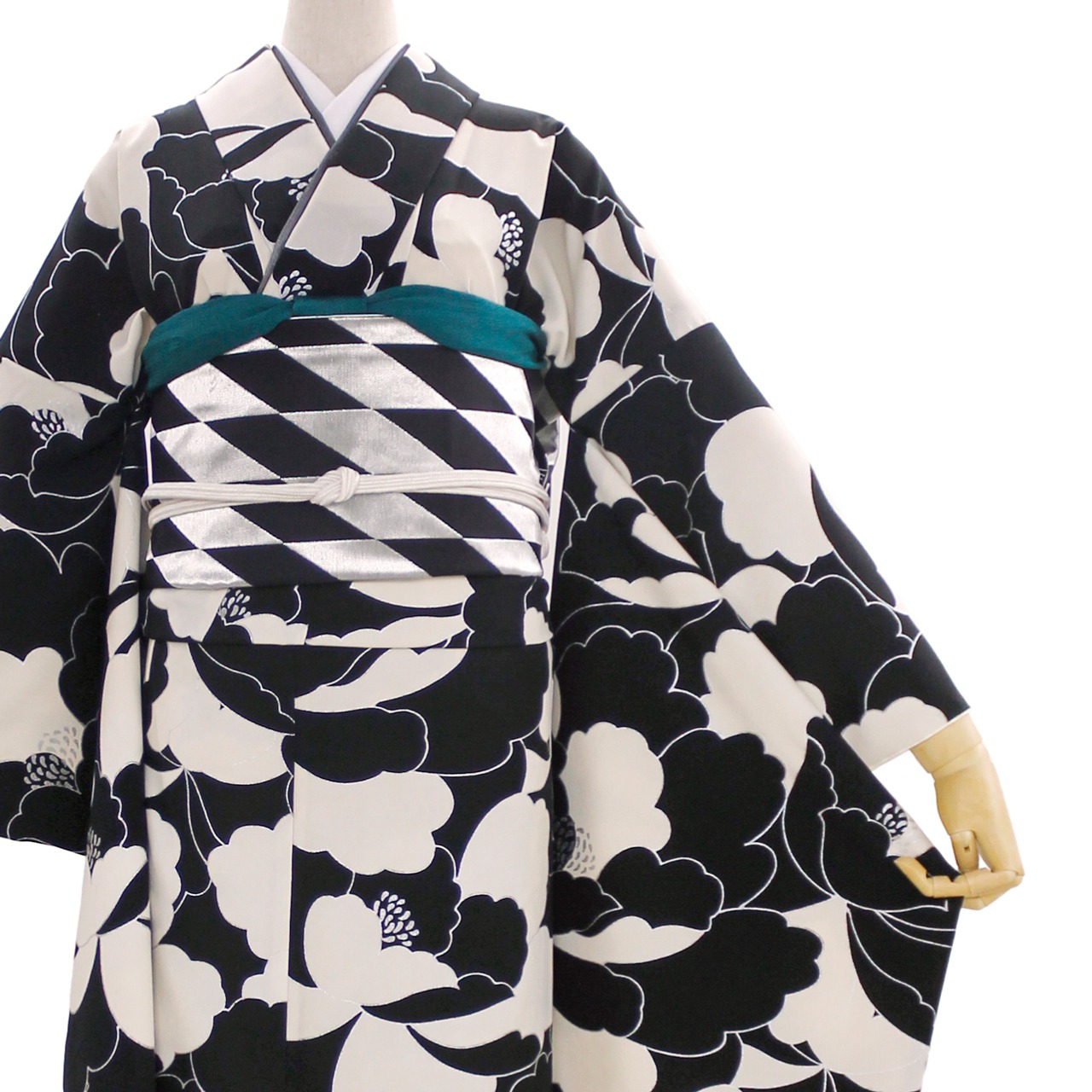 黒と白のシンプルな配色は、差し色が自由に選べるので、帯や小物をお好きな色でコーディネートできます。